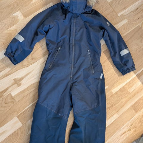 Velholdt og intakt Reima flyverdragt med aftagelig hætte i str. 92. Pelsen kan herudover tages af hætten, hvis det ønskes.