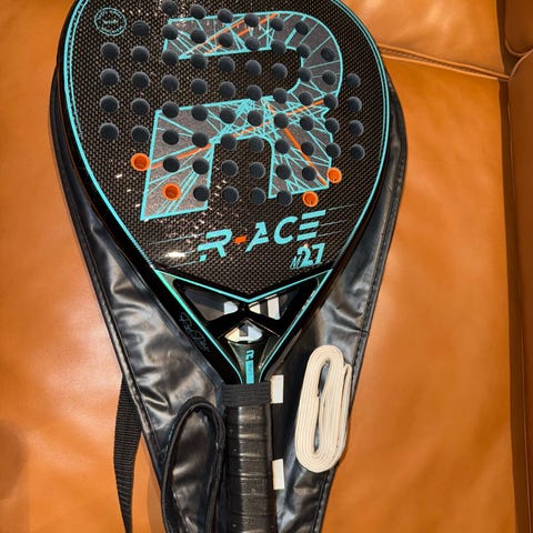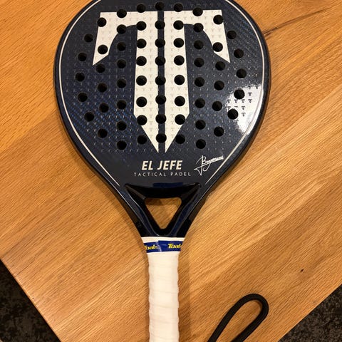 Cork Padel Premium Hybrid II. Som nyt, kun spillet med 7-8 gange. Perfekt hybrid mellem power og kontrol + armvenligt. Vægt 363 g. Nypris 2.800 kr.