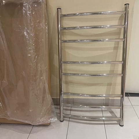 Boheme P1 1000x500 fra Horsley design. Den mest praktiske håndklædetørrer der findes. Den ekstra opvarmede hylde kan bruges til de friske håndklæder som opbevares dejlig lunt og senere kan tørres efter brug. Bøjler til vasket tøj kan ligeledes hænges på. Boheme P1 er udført i poleret rustfrit stål og kan tilsluttes varme anlæg eller el patron eller bruges i kombi drift. Super kvalitet og udførelse aldrig brugt i original embalage. Kan afhentes eller sendes men ikke med fiks og færdig pga. størrelsen.