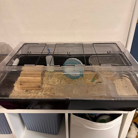 Dette glas bur har været brugt til et dværghamster.