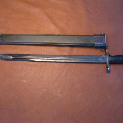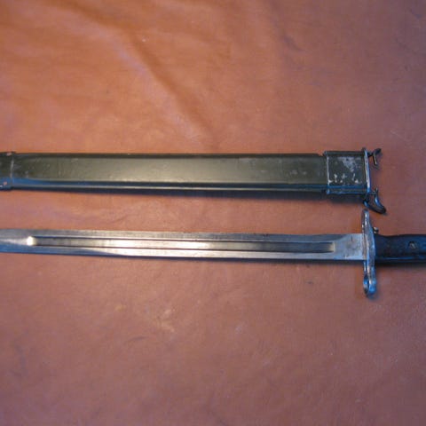 US m/1917 Remington bajonet i original skede i meget fin stand med nær mint klinge. Stemplet 1917 Remington og "bombe" US på klingebrystet og JEWELL 1918 på skeden. Et usædvanlig fint sæt.