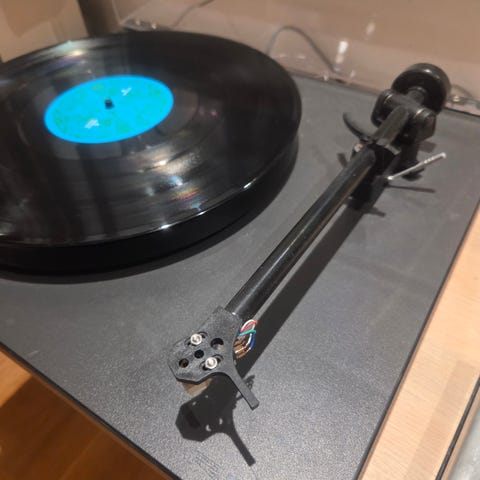 Uden pladetallerken, den gik i stykker ved flytning. Ellers rimelig pæn. En ny tallerken koster ca 1000. kr. og så har du en fantastisk pladespiller. Kom gerne med et bud. Se også mine andre annoncer