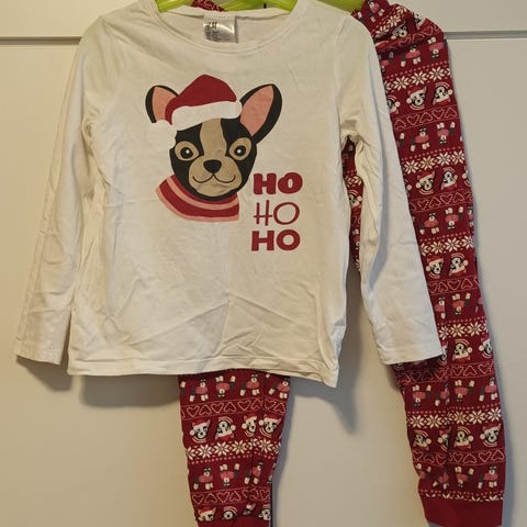 H&M Julepyjamas til børn i størrelse 110. Pyjamasen er multifarvet med julemotiver og er lavet af bomuld.