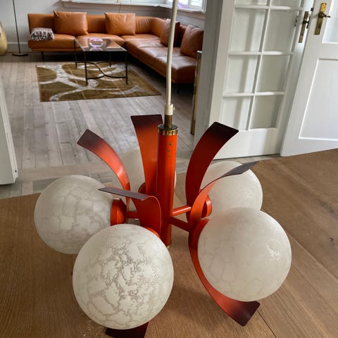 Den er tysk og fra 1960'erne. Og så er den er designet af den ikoniske lampedesigner Richard Essig.