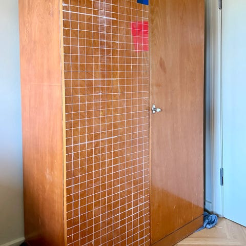 Garderobeskab gives væk til den der selv kan skrue det frahinansrn og kan hente søndag efter 13, mandag før 14 eller onsdag mellem 12 og 14