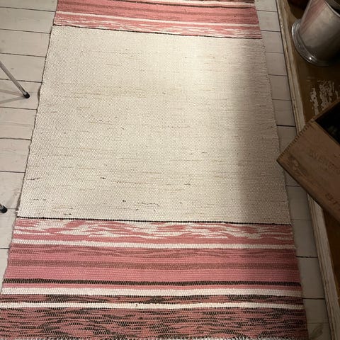 Håndvævet kludetæppe.