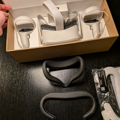 Meta quest 2 briller, brugt men i god stand. Det er 128gb briller alt følger med + kassen og en hovedstøtte