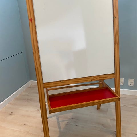 Tavle hvor den ene side er til kridt og den anden side er en whiteboard.