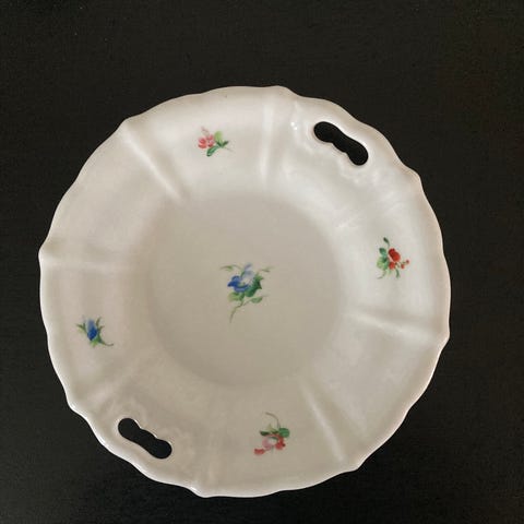 Antikt fad. Kagefad. Porcelæn. "Strøblomst". 175 kr.