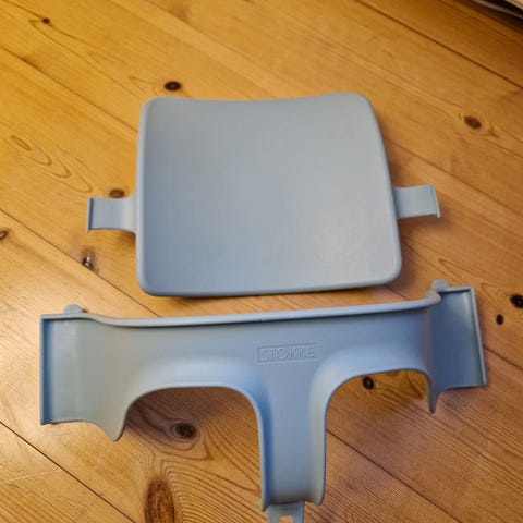 Babyindsats til Stokke Højstol med integreret sele i lys farve. Fremstillet med polstret sæde og sikkerhedsseler. Designet til at give støtte og komfort når din baby skal sidde med ved bordet.