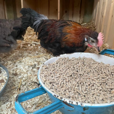 Hane, sjælden race i Danmark: Orangehalset italiener. Fantastisk flot kam. From som et lam. 6 måneder gammel og nu vil hans broder, som han ellers var så gode venner med, ikke mere dele hønsene med ham. Sidst jeg skulle af med en tilsvarende hane, var der en køber efter én dag og han kørte 2 timer for at hente den. Det var så om om sommeren ... . Og ud fra et billede hvor fjerene glinsede i solen. Dette billede er efter en dag i regnen. Giv ham et godt hjem! :-)