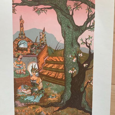 Dette litografi er overordnet set i fin stand, men har et buk på midten, som jeg har fotograferet. Jeg vil mene, at man ikke ser det.