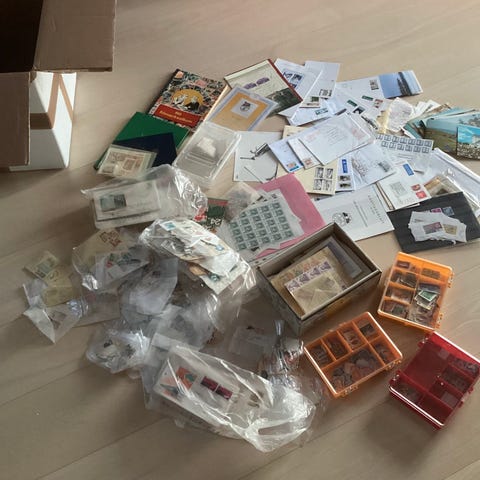 Spændende rodekasse med Norge samling i Stender fortryk album med rigtig mange mærker, dog uden de rigtig gamle mærker. 6 stk udvalgshæfter fra Island og Grønland. 16 siders indstiksbog med postfriske danske mærker. Årsbog fra Irland 1989-1990. Mange føstedagskurverter fra Danmark og Færøerne og meget mere.