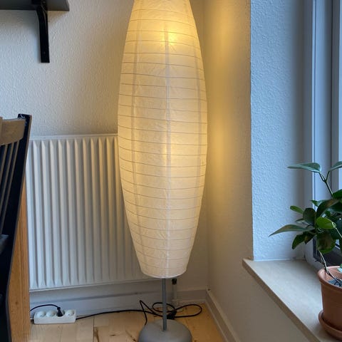 Fin lampe med få aldersrelaterede brugsspor. 130 cm. i højden. Afbryder på stangen.