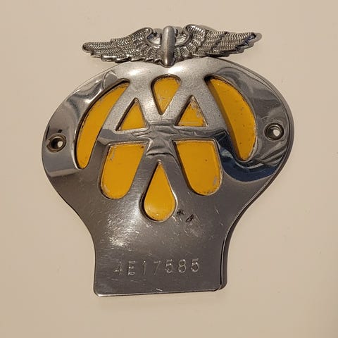 Kendetegnet ved den røde baggrund, det sorte skjold og de tre sværd – et klassisk og eftertragtet design til restaurering af britiske veteranbiler.