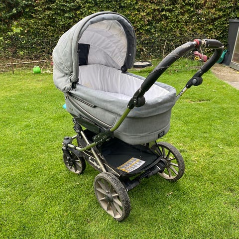 Emmaljunga barnevogn i sort farve. Barnevognen er designet til børn og har en komfortabel siddeplads. Den er udstyret med sikkerhedsseler og en polstret sele for ekstra komfort. Velegnet til daglig brug og transport af børn.