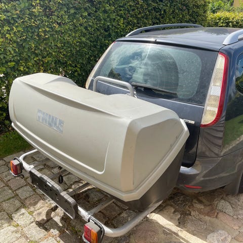 Sidder på Thule Easybase, hvor der også kan monteres cykelholdere.
