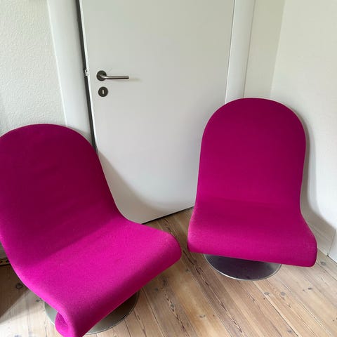Sælger disse vintage Verner Panton 1-2-3 stole i rosa uld.