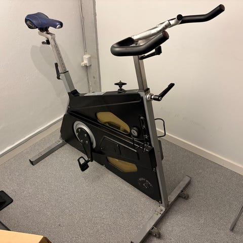 Body Bike Indoor Cycle motionscykel i grå farve. Designet til indendørs brug med justerbart sæde og styr. Velegnet til træning og konditionsforbedring.