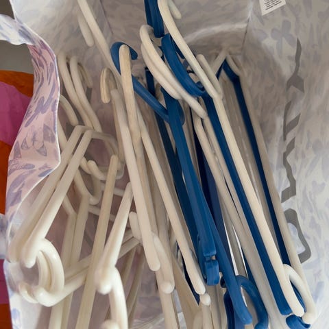 bøjler, med plastik overtræk, 2 bøjler med rødt plastik overtræk og en ag træ, samlet