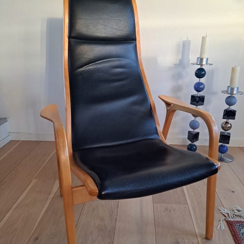 2 stk Lamino lænestole - 1 med høj ryglæn og 1 med lav ryglæn, og en fodskammel
