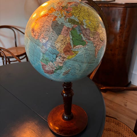 Dekorativ antik globus af ældre dato. Estimeret 1920’erne eller 1930’erne.