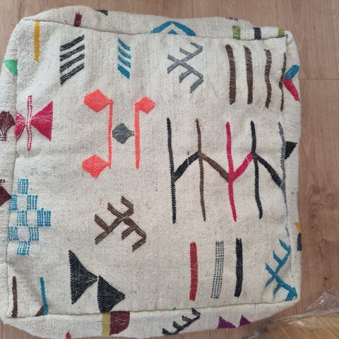 Smuk unik uld puf fra Marokko 35x35x15 cm uden indhold.