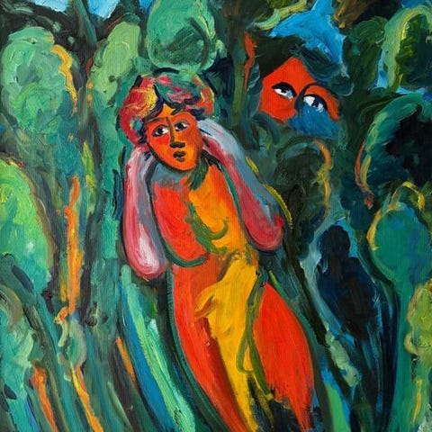 Tom Krestesen abstrakt maleri fra 1964 vistnok solgt hos Galerie Marya i Bredgade udstillet sammen med Gordon Fazakerley ..Nordiske Eventyr. kr 2000