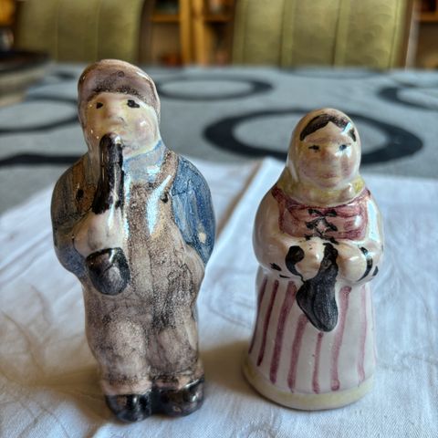 Keramisk figur af fisker med pibe