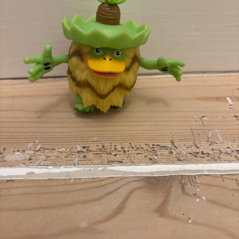 Pokémon Mewtwo figurine i lilla og lyserød. Figuren er lavet af plastik og repræsenterer karakteren Mewtwo fra Pokémon-serien.