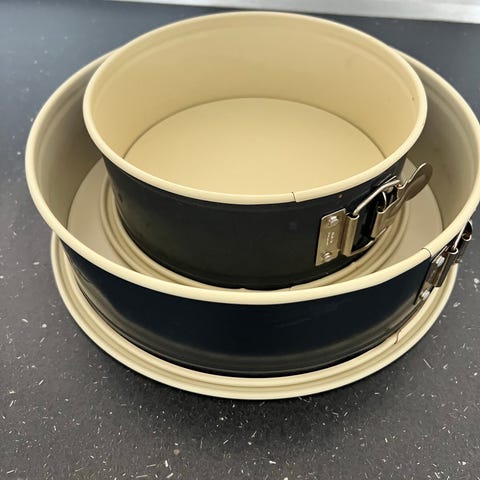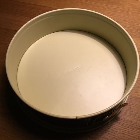 Bagering fra Blomsterbergs. Måler 24 cm i diameteren og 5 cm i højden. Kan tåle ovn, fryser og opvaskemaskine. Brugt nogle gange. Er slået en lille smule skæv nogle steder, men fejler ellers intet.