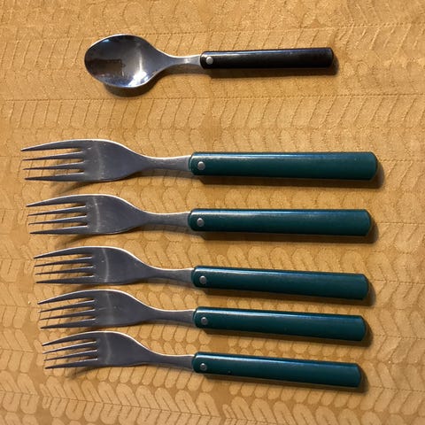 Hackman Sorsakoski finsk design knive (6) og gafler (6) fra 1950’erne. I god stand. Stainless steel, 175 mm (gaffel), 205 mm (kniv). Afhentes fra Frederiksberg.