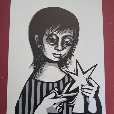 Enkelt og fint linoleumssnit af kunstneren Jürgen Dost