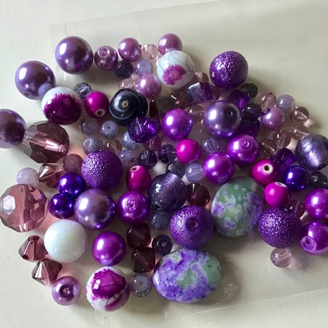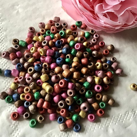 Skønne, farvestrålende GLASPERLER til din egen smykkefremstilling. Perlerne er lidt uens i størrelsen, 4-5 mm, og der er hele 40 gram i posen til 30 kr. Perlerne har ikke været i brug