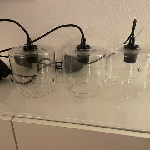Pæren i lampen fra jysk er delvist sprunget, og har derfor en lavere belysning. De to pærer fra IKEA lamperne lyser godt.