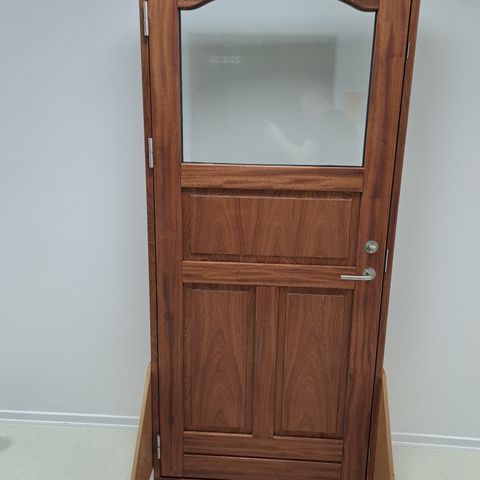 Maghoni døre med frostet glas.
