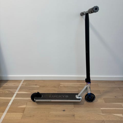 Dette Longway Trick Pro Scooters Løbehjul i sort farve. Designet til brug med et solidt styr og en robust platform. Velegnet til transport og fritidsbrug. Det er virkelig godt kørende og god til en masse tricks. Kostede 1100kr for 3 år siden.