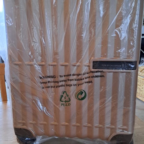 Tobias Jacobsen kuffertsæt med 3 kufferter. 2 med hjul og den lille kan monteres på de to andre kufferter.