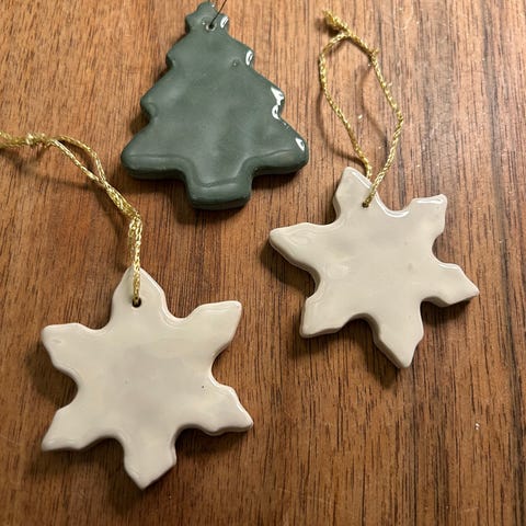 En blanding af nyt og gammelt julepynt sælges samlet. Der er blandt andet en juleplatte fra 1970, gammel glaspynt, broderede ting, julesange, lysestager og meget mere.