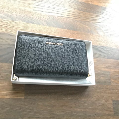 Sort/grå med god plads. 18 cm lang, 10 cm høj og 3 cm bred. Kortholder til 7 kort, lynlåslomme til mønter, lomme til div. kort, mobilrum mv. Rigtig fin stand, ingen mærker eller andet