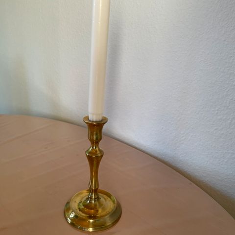 Messing lysestage, messing, Gammel messing lysestage højde ca. 7 cm. Passer til lys med diameter 5 cm