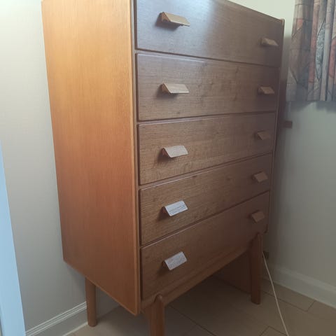 Kommode og bord i eg, designer Aksel Kjersgaard