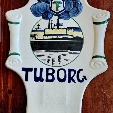 Smuk Tuborg platte fra Aluminia. Har været revnet, hvilket kan ses på bagsiden, men skaden er usynlig forfra. Perfekt til ophæng.
