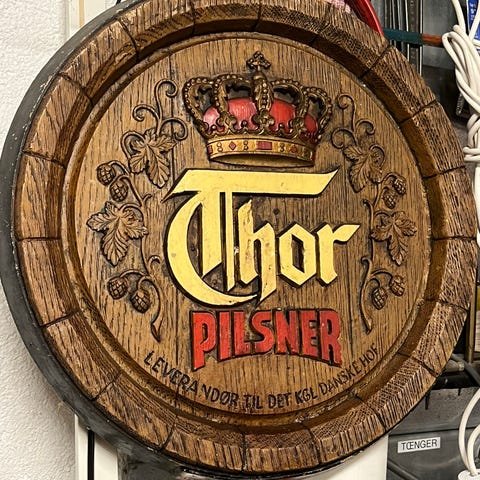 Klassisk Bock Pilsner tøndebund med markant logo. God stand og klar til ophæng.