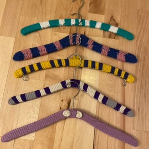 Bøjler, Retro tøjbøjler beviklet med plast eller strikuld. kr 20,-/stk (805) (de 2 med plastovertræk solgt)