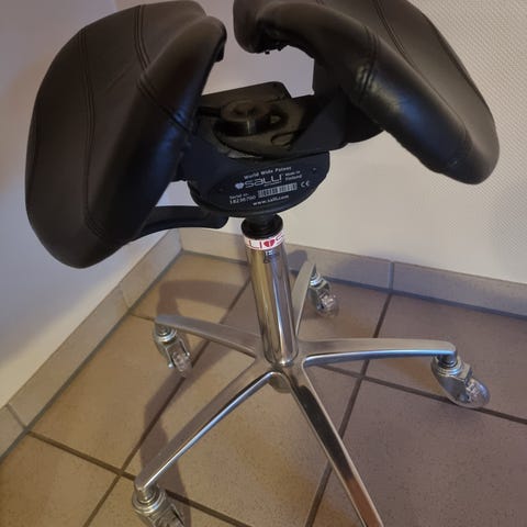 Sælger en original Salli Pony sadelstol fra det finske kvalitetsmærke Salli. Stolen er ergonomisk designet og splittet på midten, hvilket sikrer en korrekt og naturlig siddestilling samt god aflastning af ryg og hofter.