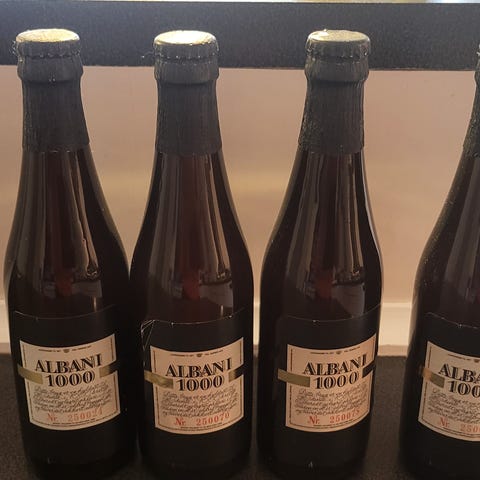 Mindre Albani tøndebund med flot logo. God stand og klar til ophæng.