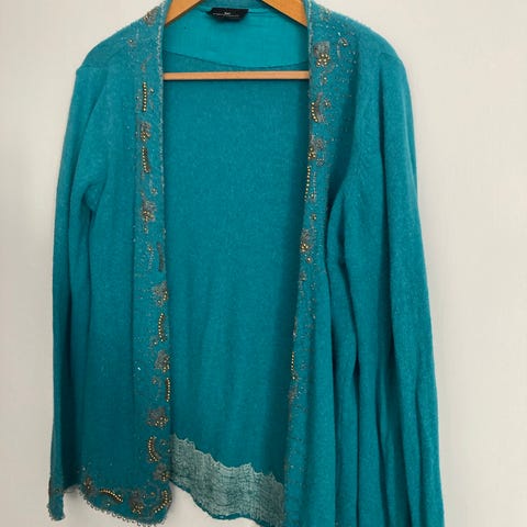 Cardigan, Day Birger et Mikkelsen, str. 40, Beige, Viskose og bomuld, Ubrugt, Lækker cardigan med blonde ærmer, som desværre er købt for lille.