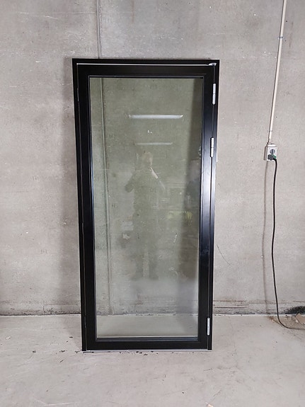 Fastkarms vindue i træ/alu med satin mat glas, 3-lags energirude