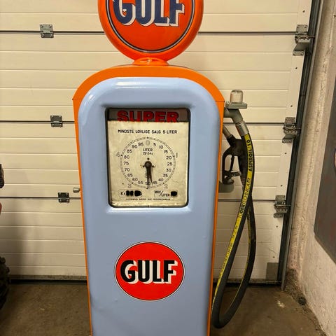 Texaco Vintage Benzinpumpe i rød og grøn farve. Modellen har detaljer som to slanger og en rund Texaco Gas-top. Fremstillet af metal og designet til samlerbrug eller som dekorativ genstand. Er udført som en sparebøsse sender gerne køber betaler porto